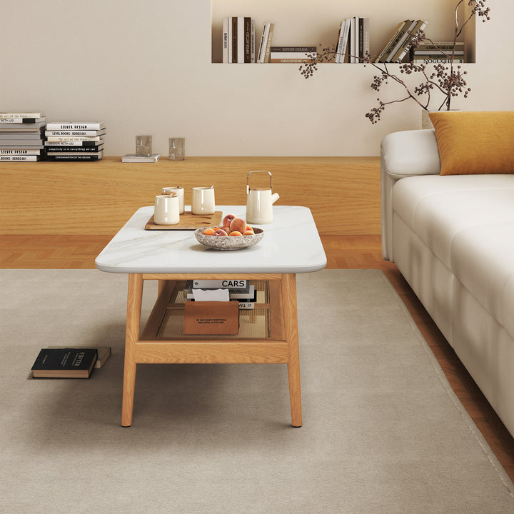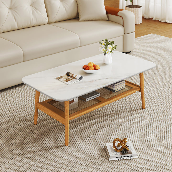 Remini Ceramic top Coffee Table, 1.2M, White & Wood
