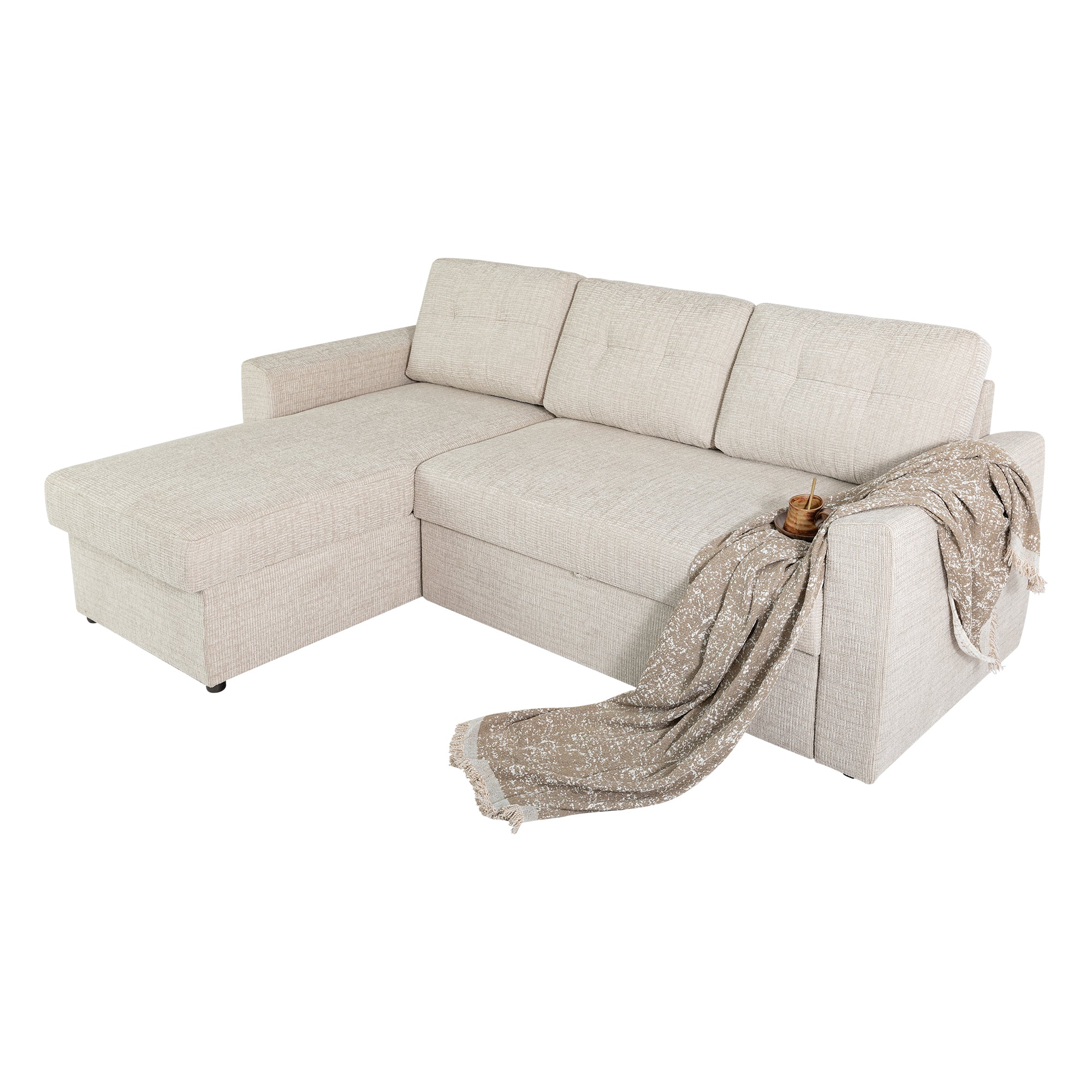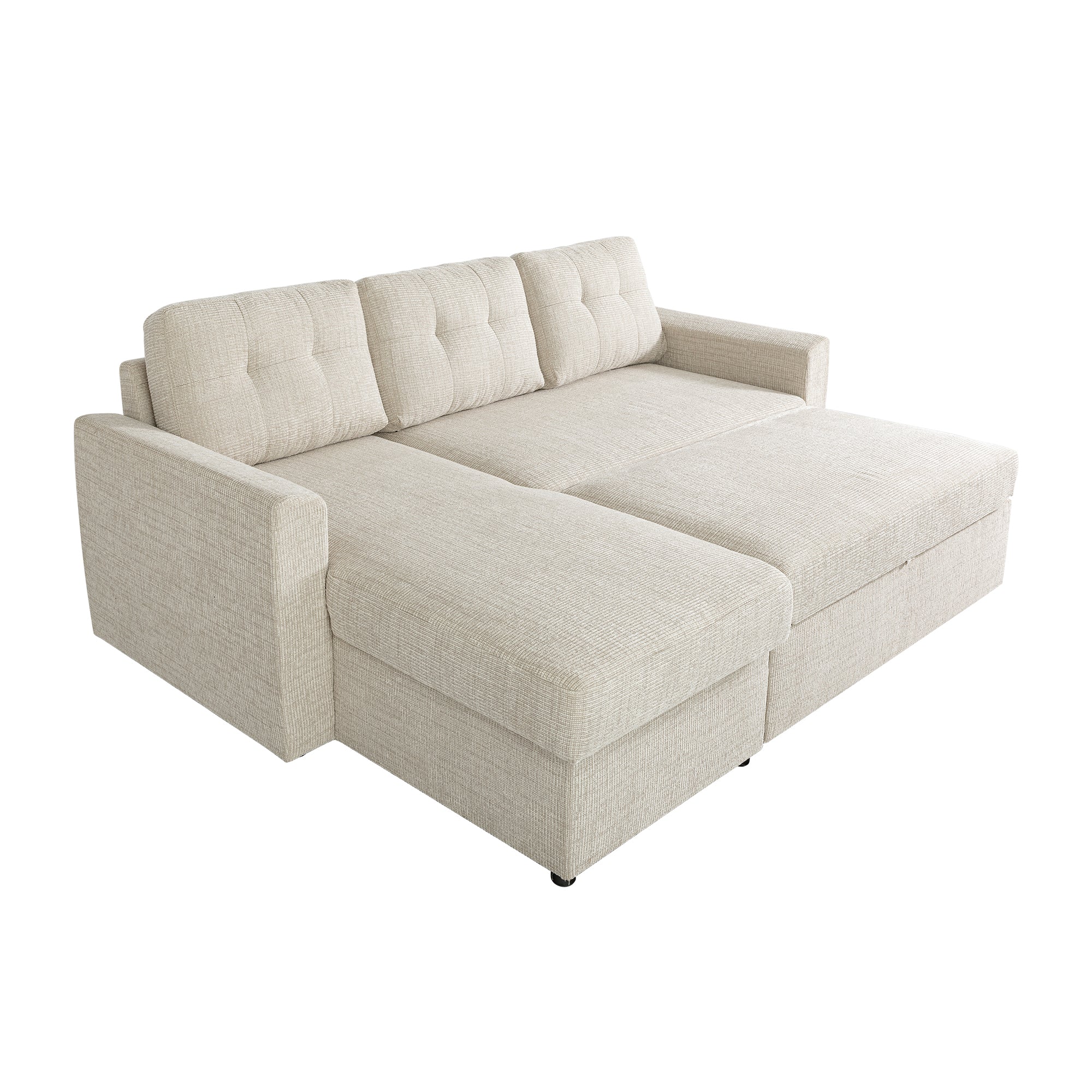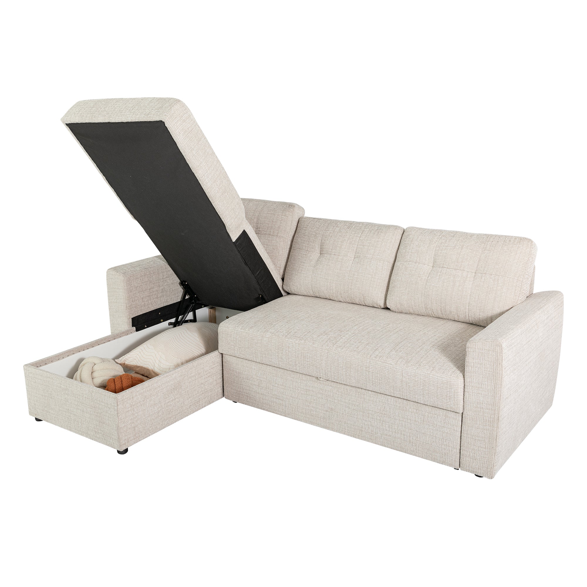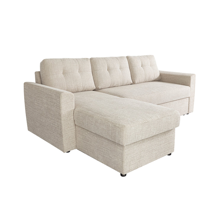 The Nola Sofa Bed, crafted with meticulous attention to detail, is designed to elevate your living space with both comfort and style. Seamlessly transforming from a spacious sofa to a cozy bed, it’s perfect for everyday lounging or accommodating overnight guests. The cleverly designed chaise also features built-in storage, providing a practical solution for keeping blankets, pillows, or other essentials neatly tucked away. With its timeless design and versatile functionality, the Nola Sofa Bed is a smart addition to any modern home.