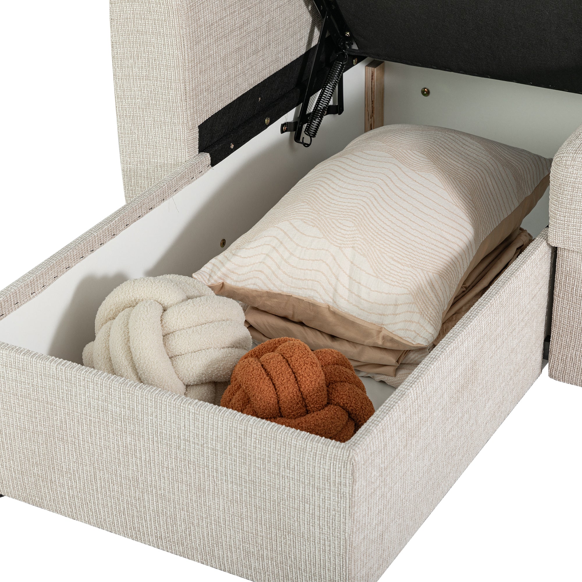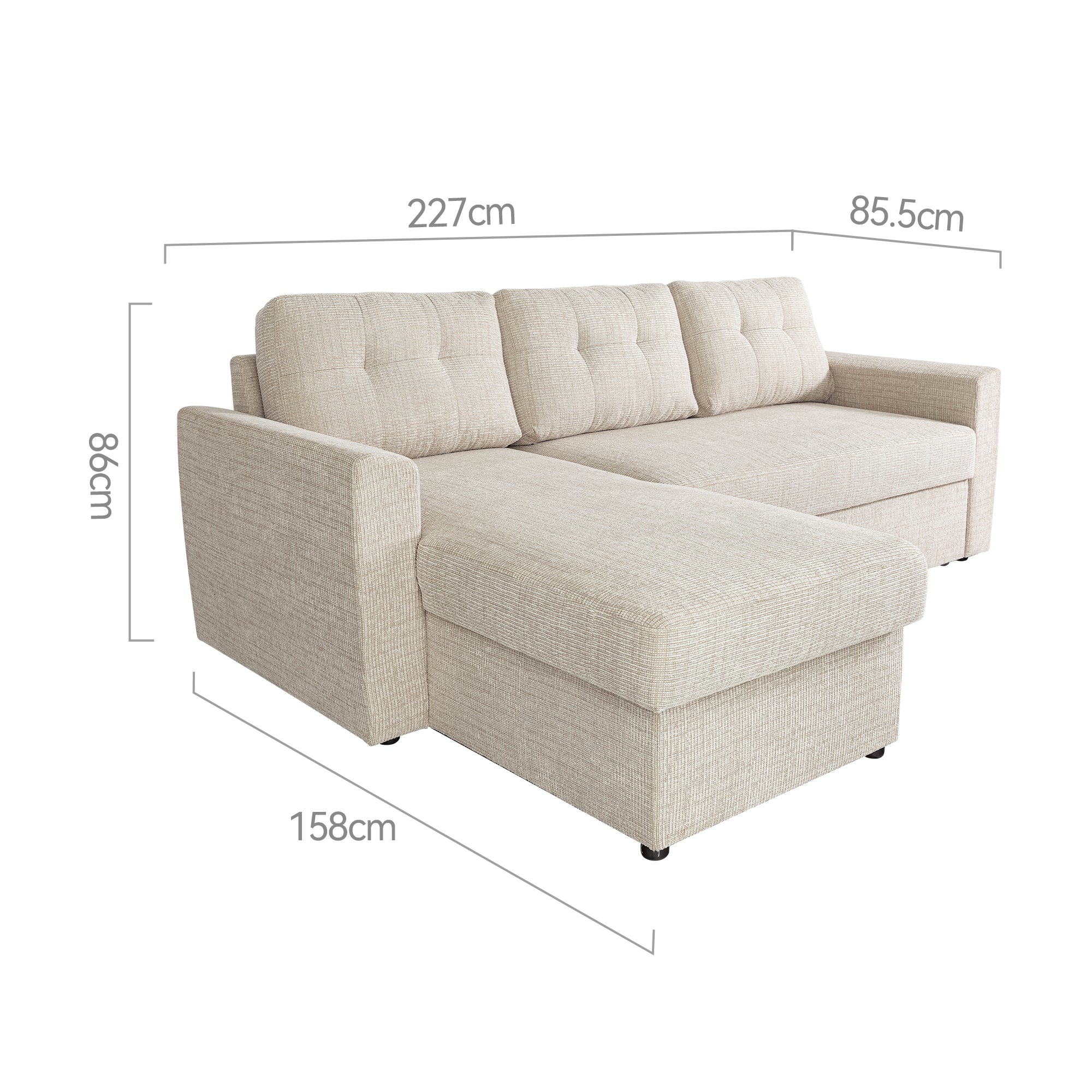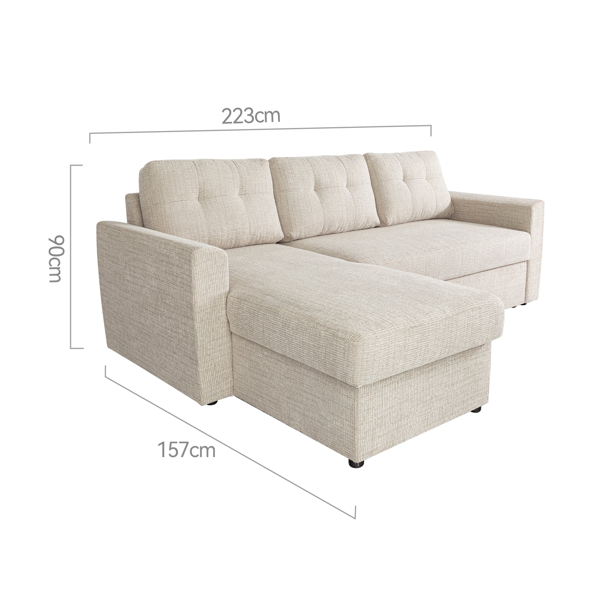 The Nola Sofa Bed, crafted with meticulous attention to detail, is designed to elevate your living space with both comfort and style. Seamlessly transforming from a spacious sofa to a cozy bed, it’s perfect for everyday lounging or accommodating overnight guests. The cleverly designed chaise also features built-in storage, providing a practical solution for keeping blankets, pillows, or other essentials neatly tucked away. With its timeless design and versatile functionality, the Nola Sofa Bed is a smart addition to any modern home.