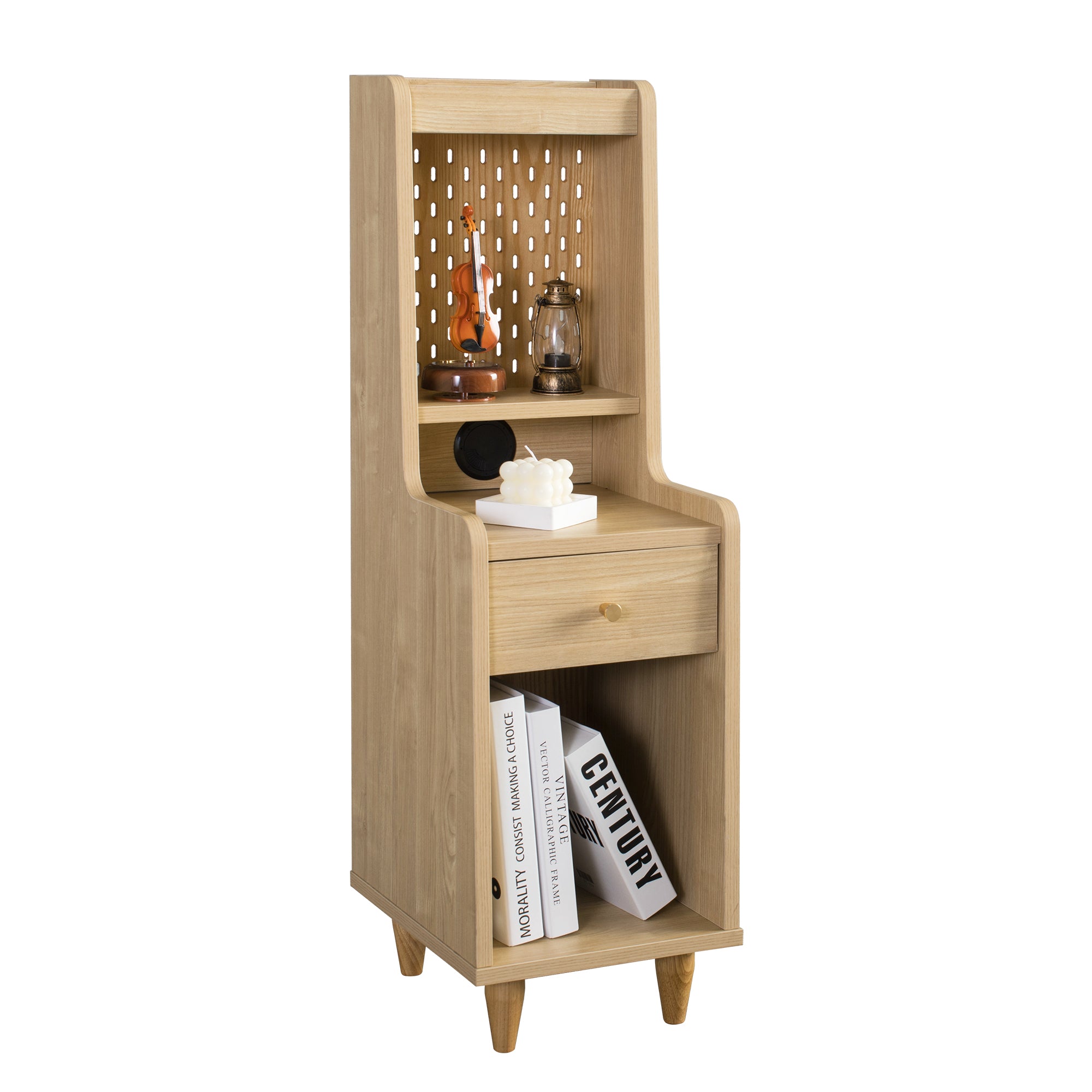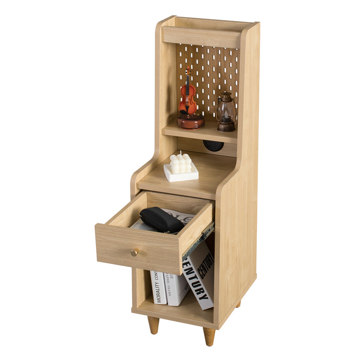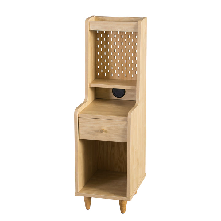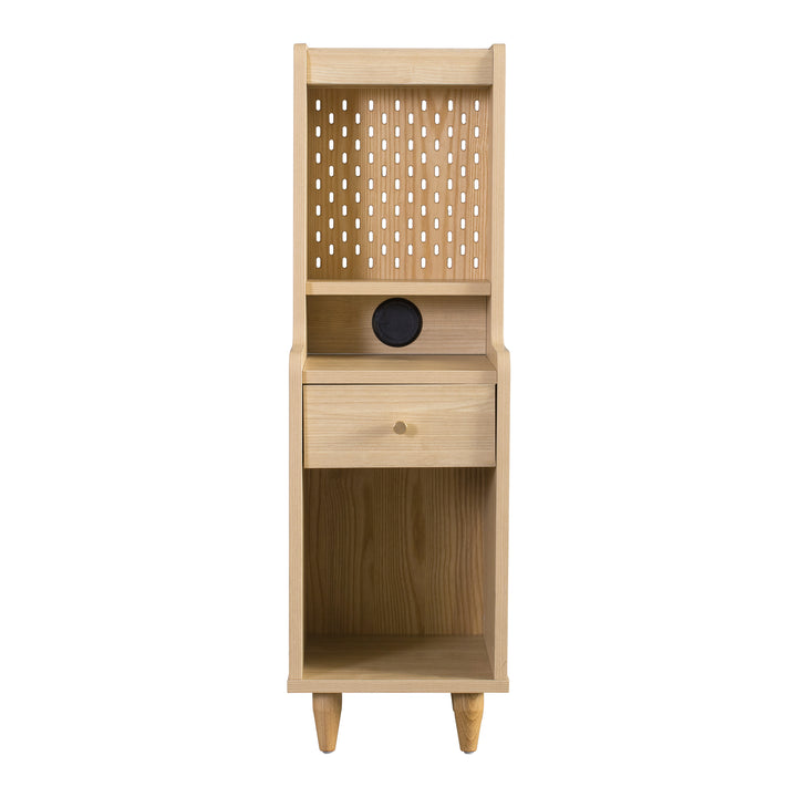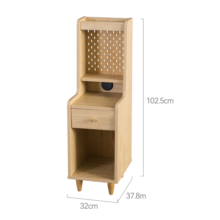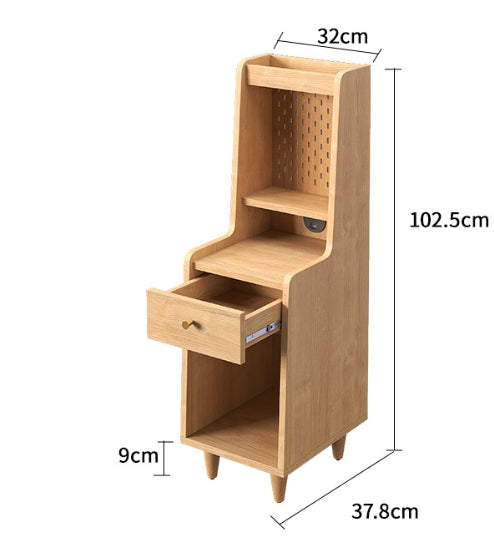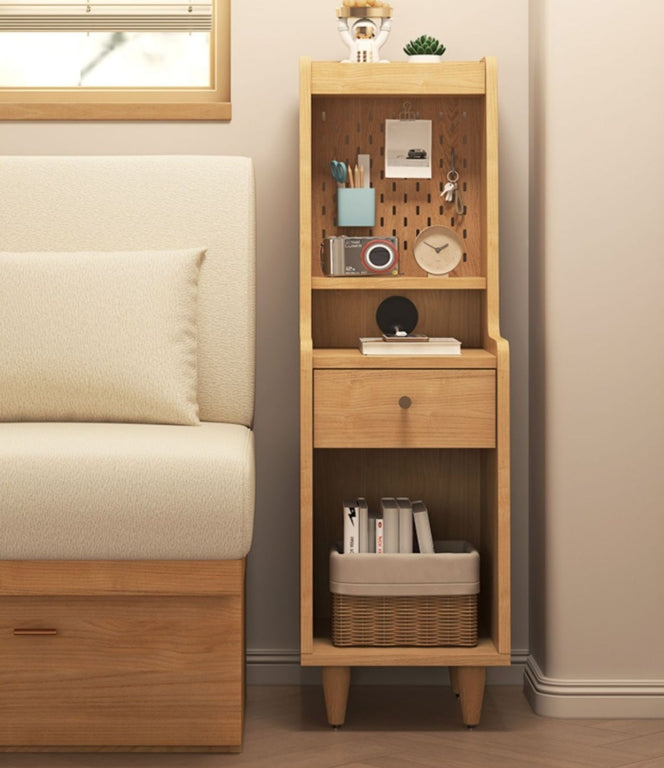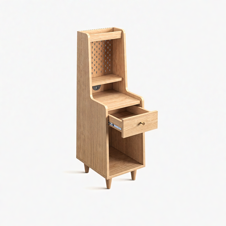 The Sezze Bedside Table combines functionality with a minimalist natural wood design, making it a versatile piece for any bedroom, living room, or study. With multiple storage layers, a smooth-sliding drawer, and a convenient back panel with plug access, it’s perfect for both style and practicality. Its tall, slim profile makes it ideal for maximising space while keeping essentials organised.