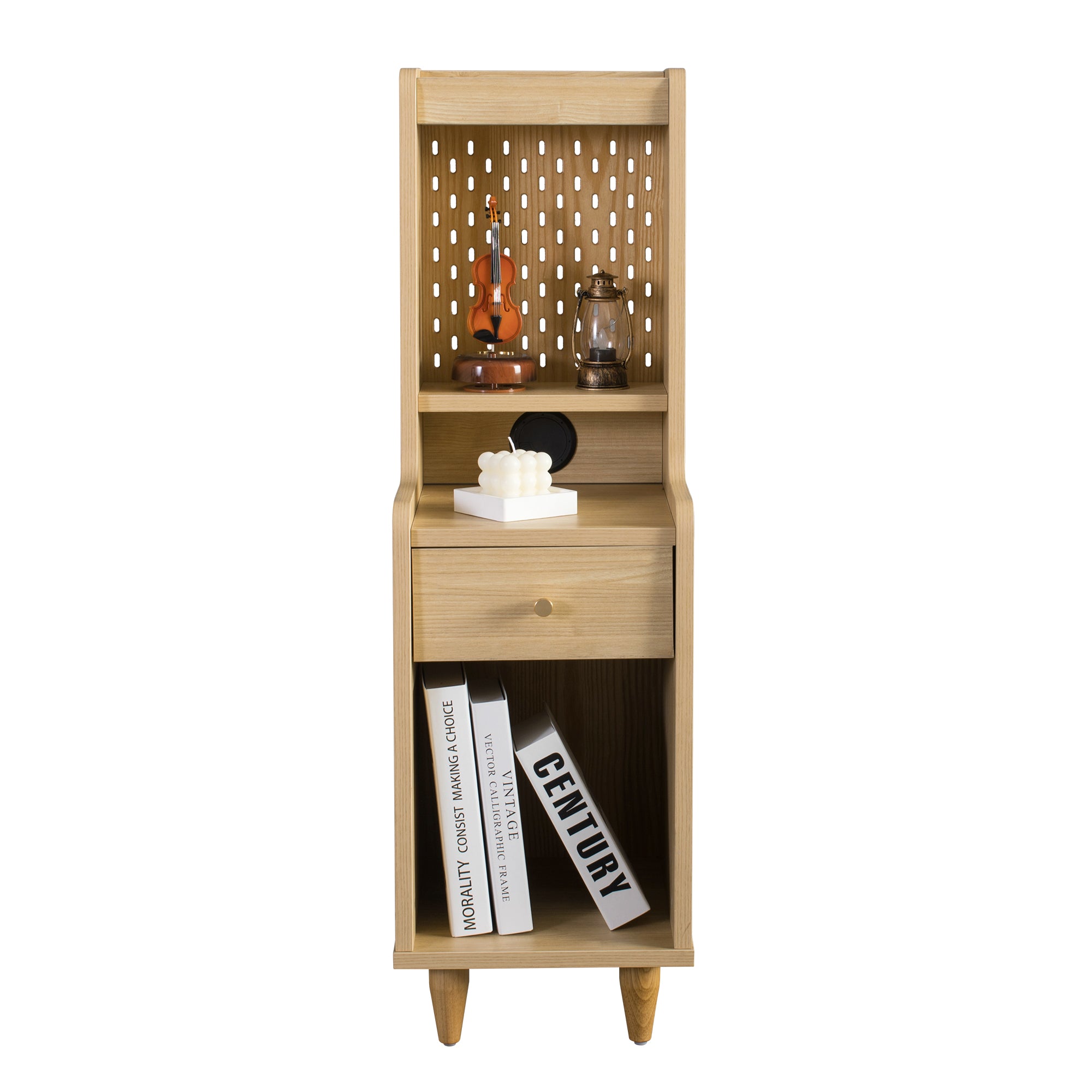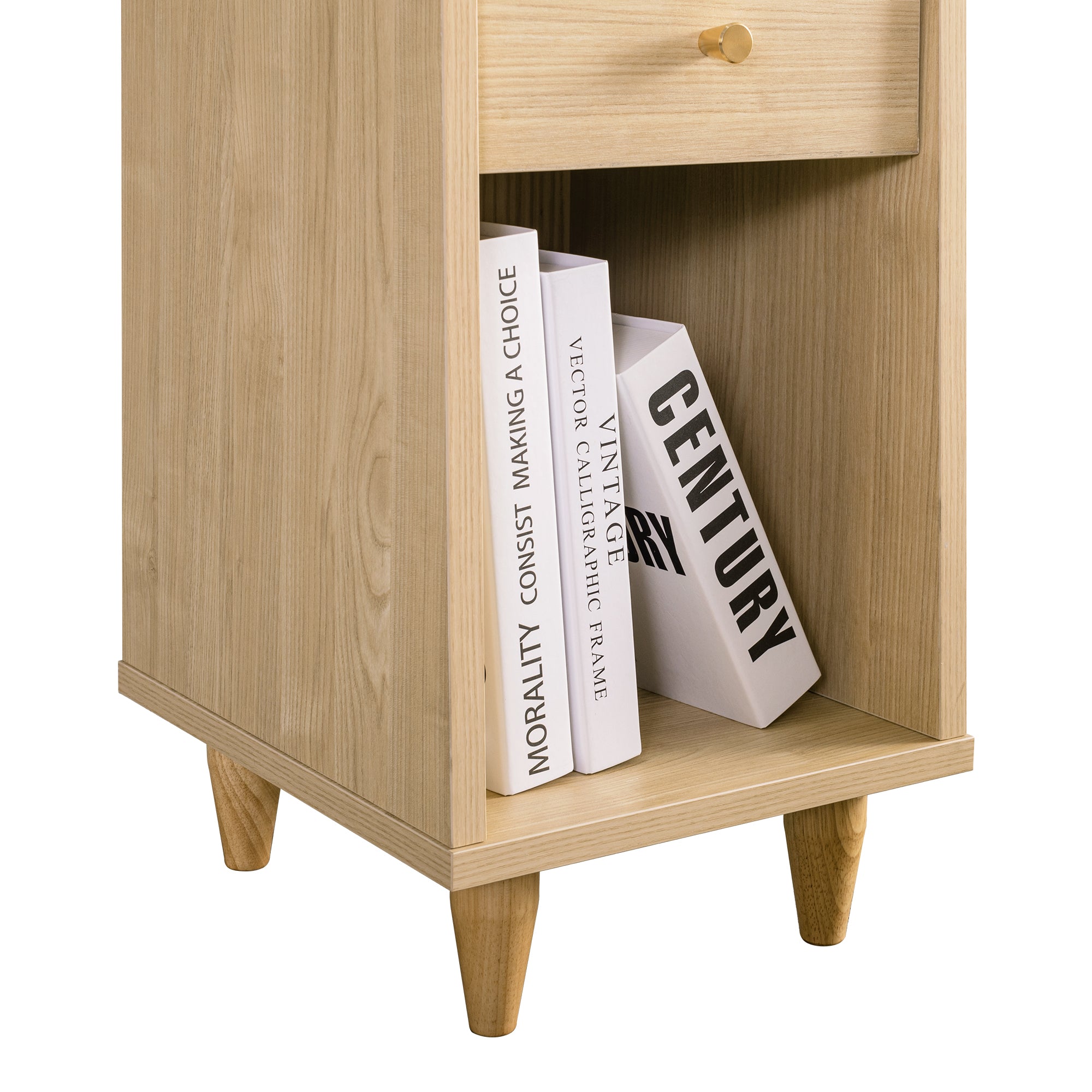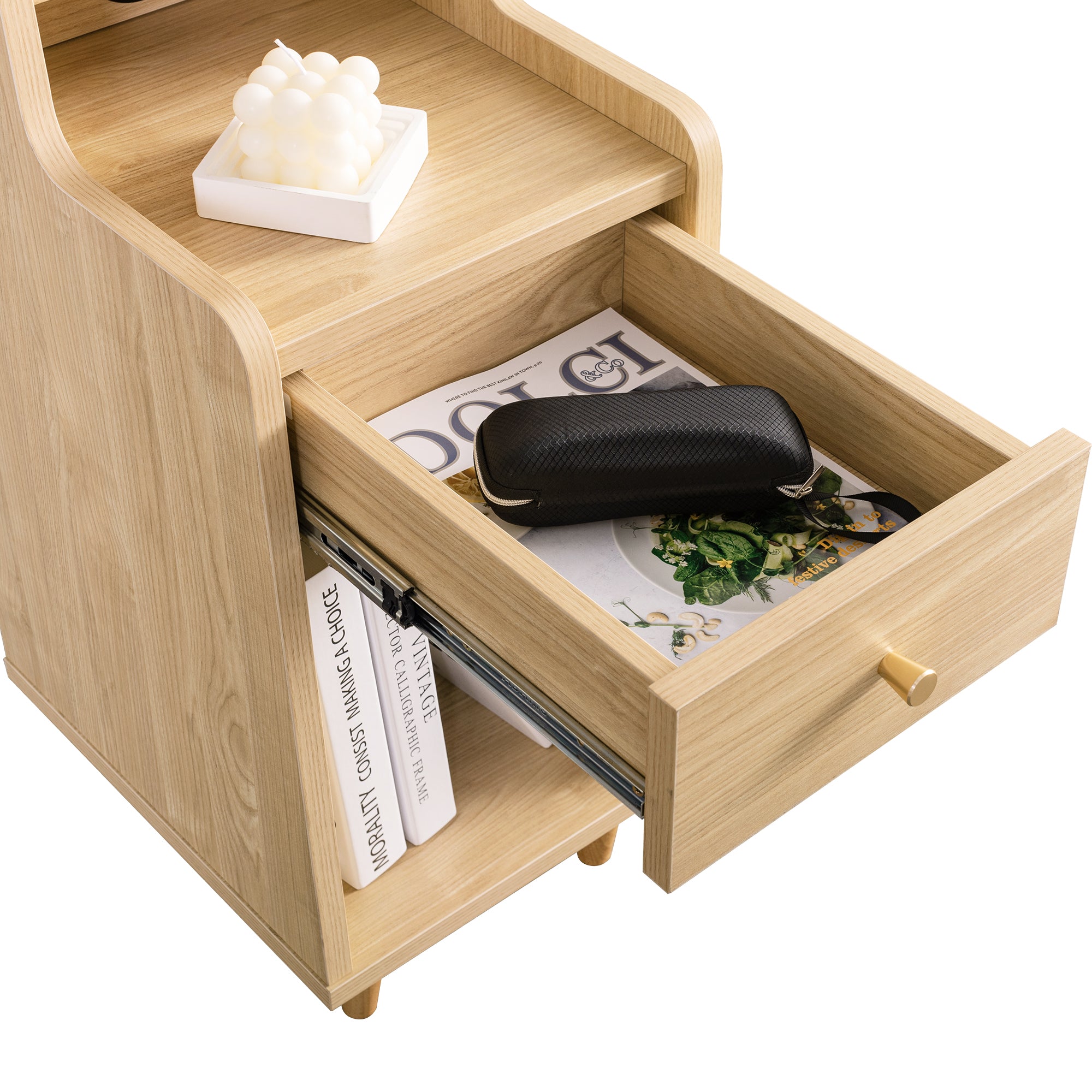 The Sezze Bedside Table combines functionality with a minimalist natural wood design, making it a versatile piece for any bedroom, living room, or study. With multiple storage layers, a smooth-sliding drawer, and a convenient back panel with plug access, it’s perfect for both style and practicality. Its tall, slim profile makes it ideal for maximising space while keeping essentials organised.