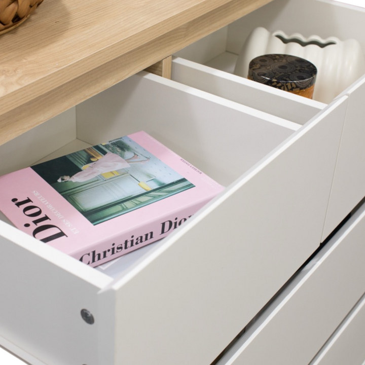 Sotta 6-Drawer Tallboy, Oak & White