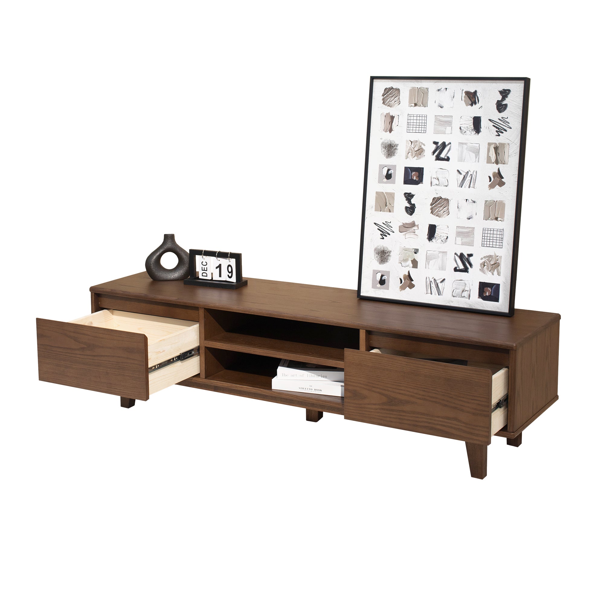 • Open centre shelves ideal for media players, consoles, or décor display